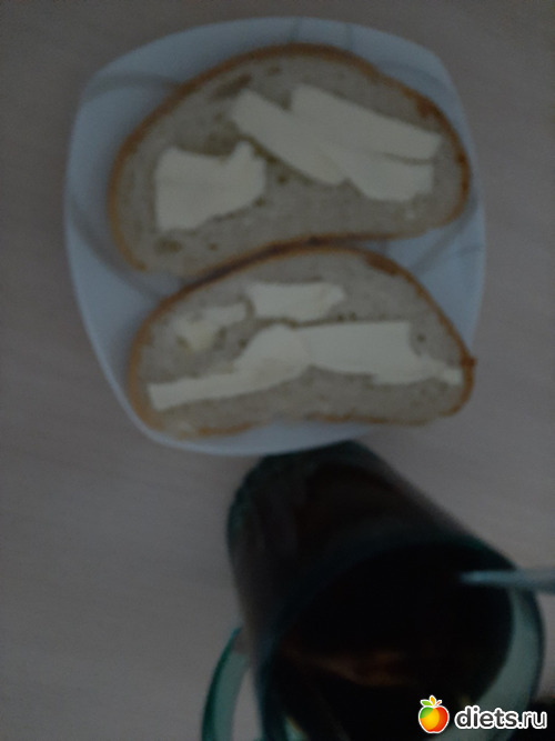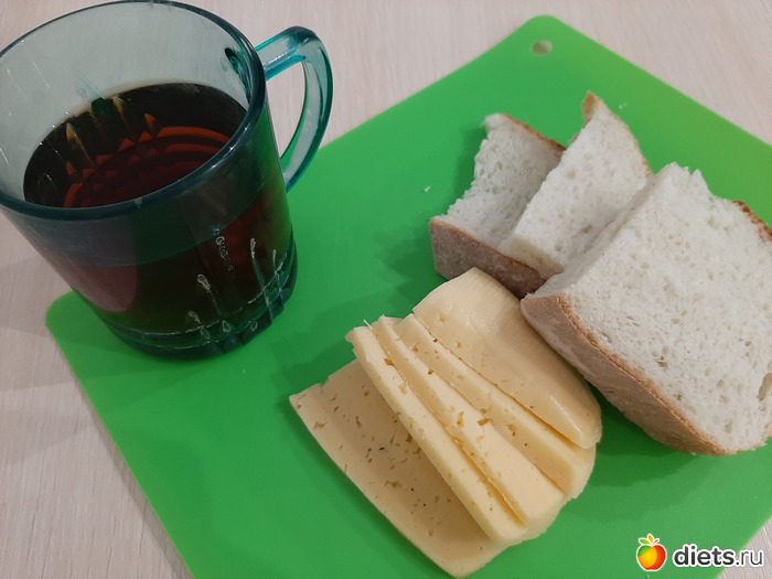 Мой завтрак: хлеб белый (64 гр), сыр (89 гр) и черный чай с 1 ложкой сахара.