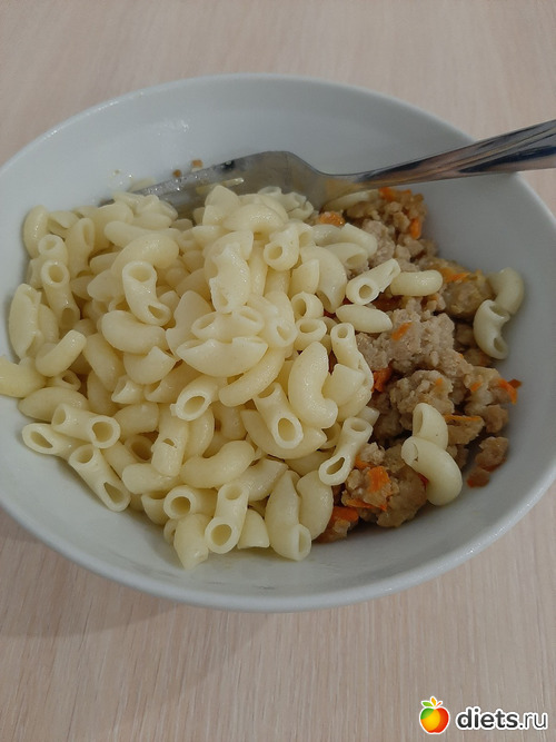 Мой ужин: рыбный фарш (104 гр) с макаронами (135 гр) и черный чай с 1 ложкой сахара.