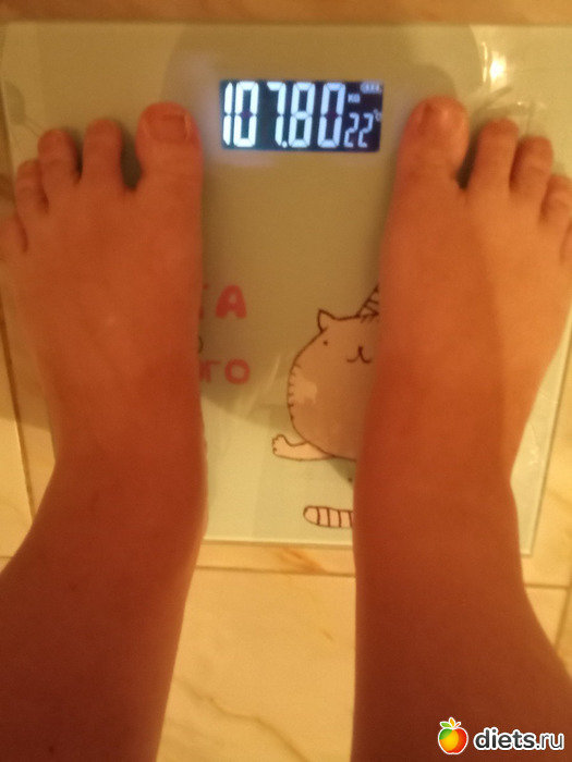 За эти два дня, я как то расслабилась, позволяла себе кушать, всё, что хочется и конечно же вес мой вырос до 108.700 кг, вот сегодня вес снижается и вешу я 107.800 кг!)