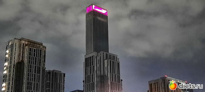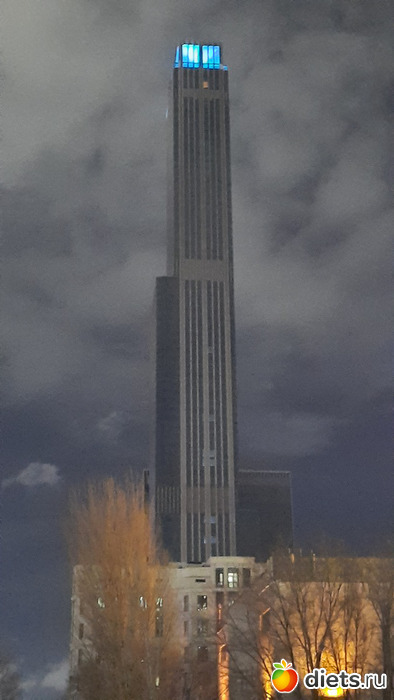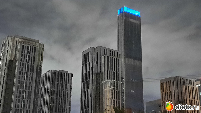 светится как маяк, проблесковыми огоньками, видно далеко за городом