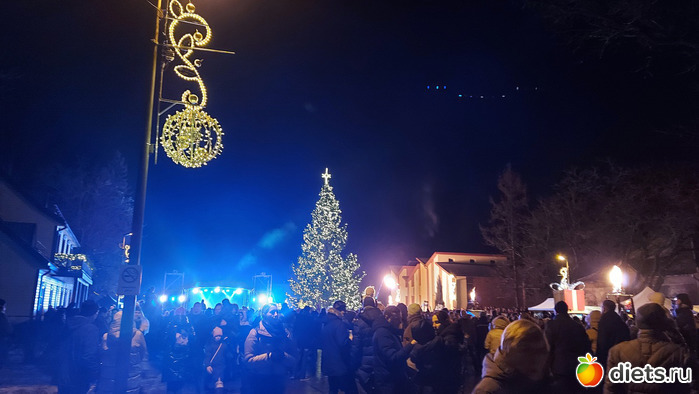 Возвращались за конвертом и поэтому опоздали на 40 минут. Елка уже была зажжена, основная часть программы закончилась
