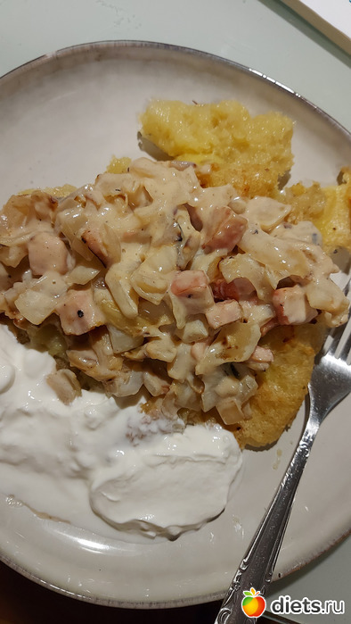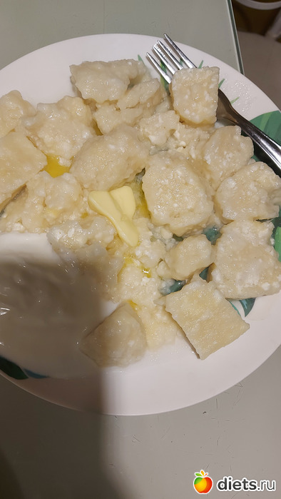 Сьела большую порцию, на тарелке примерно половина, одного только творога 300 г. Но все равно так несытно
