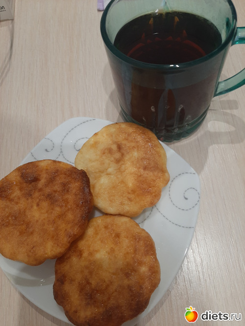 Мой завтрак: сырники (165 гр) и черный чай с 1 ложкой сахара.
