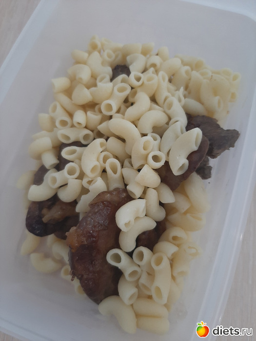 Мой ужин: макароны отварные (79 гр), печень куриная (128 гр) и черный чай без сахара.
