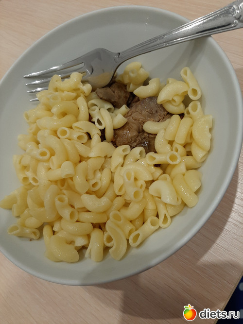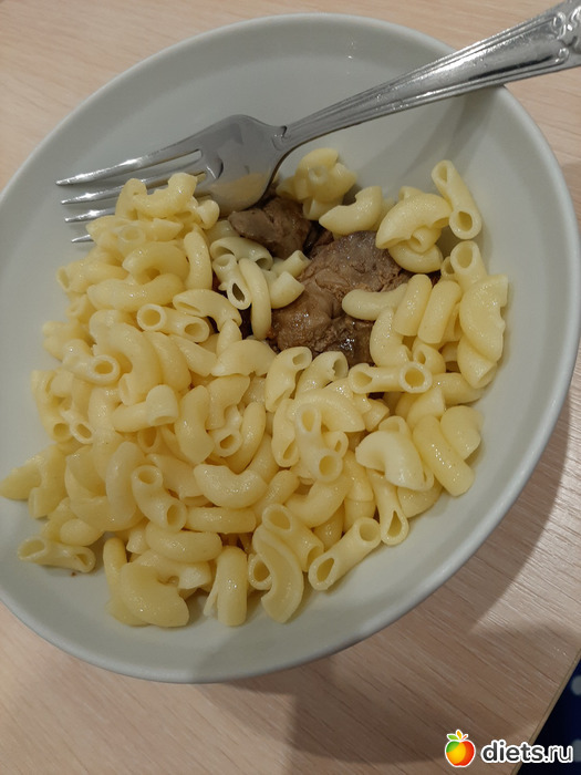 Мой обед: макароны отварные (72 гр) со свиной котлетой (100 гр) черный чай без сахара.