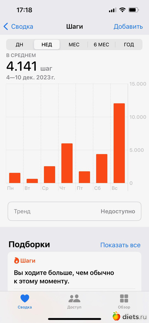 Помимо питания, полный швах, конечно, с движением - чуть больше 4 тысяч шагов в день в среднем: