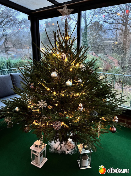 В магазине с елочными украшениями было не протолкнуться, а нам архиважно было что-то купить, потому что после переездов у нас ничегошеньки из всей этой праздничной мишуры не было. Таки купили, елку нарядили - поставили на веранде: из гостиной просматривается хорошо, коты не достанут, да и прохладно на веранде - надеемся, лучше стоять будет: