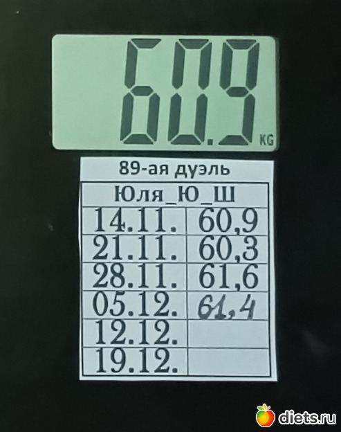 Добрый день! Маленький конечно, но отвес. Хочется в новогоднюю ночь быть в весе 60, буду стараться