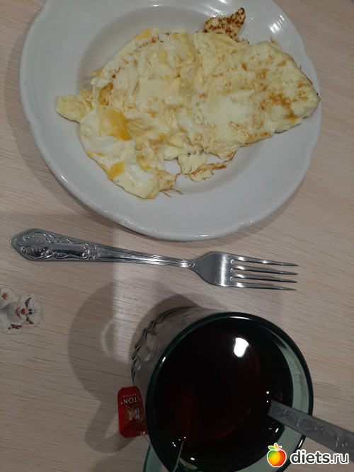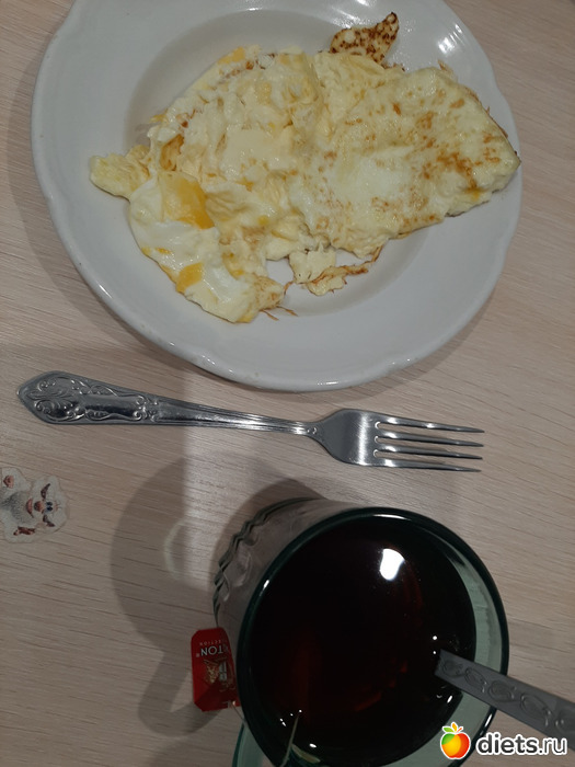 Мой завтрак: яичница с молоком (168 гр) и черный чай с 1 ложкой сахара.