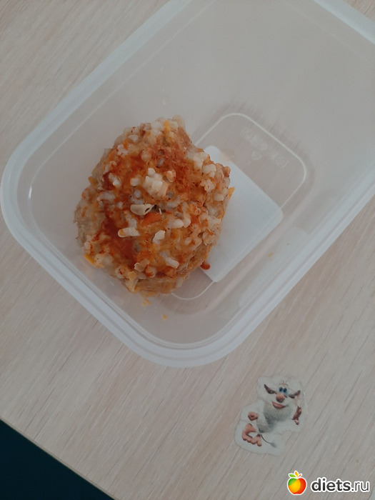 Мой обед: ёжик с рисом из свинины (115 гр) и вода.