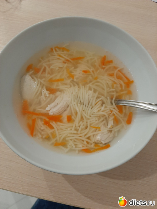 Мой ужин: суп куриный с вермешелью (295 гр) и вода.
