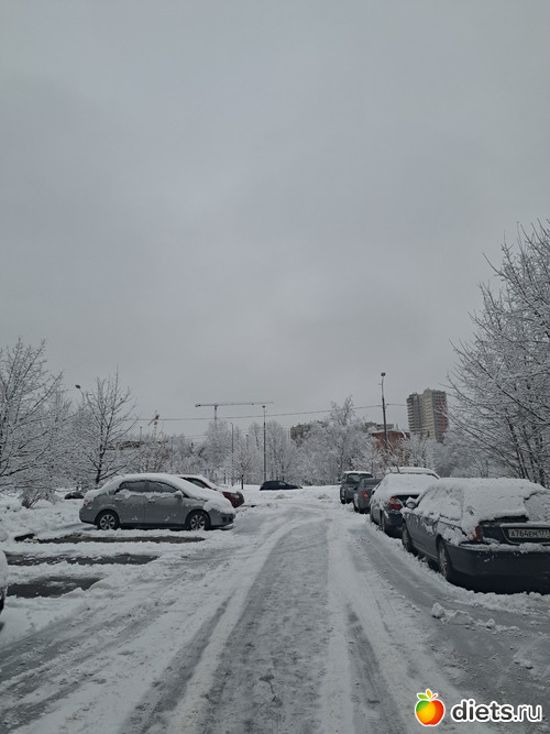 Но по температуре все равно достаточно тепло было - 0 - +1 градус. Гуляла 1,40 мин, под конец газелька окатила меня мокрым снегом с головы до ног