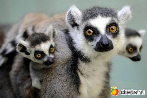 Главной областью обитания лемуров служит остров Мадагаскар и соседние с ним острова; кроме того, они попадаются с Африки, распространяясь по всей средней полосе этой части света, от восточного до западного берега, и только немногие виды живут в Индии и на Зондских островах. Но все без исключения виды семейства лемуров живут в лесах, предпочитая непроницаемые, богатые плодами и насекомыми девственные леса остальным. Близости людей они хоть прямо и не избегают, но и не ищут. Будучи в большей или меньшей степени ночными животными, лемуры, подобно всем вообще членам своего отряда, забираются днем в самые темные места леса или в дупла деревьев и спят там, скорчившись или обнявшись. Позы их при этом в высшей степени своеобразны: они или сидят на задних лапах, крепко уцепившись руками за сук и низко опустив голову между притянутыми передними конечностями и обвив хвостом голову и плечи; или же свертываются попарно, обвив друг друга хвостами так тесно, что образуют собой шар: если потревожить такой меховой клубок, то внезапно из него высовываются две головы, которые большими, удивленными глазами смотрят на неприятных нарушителей их покоя.