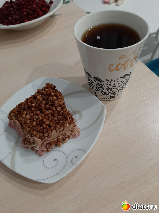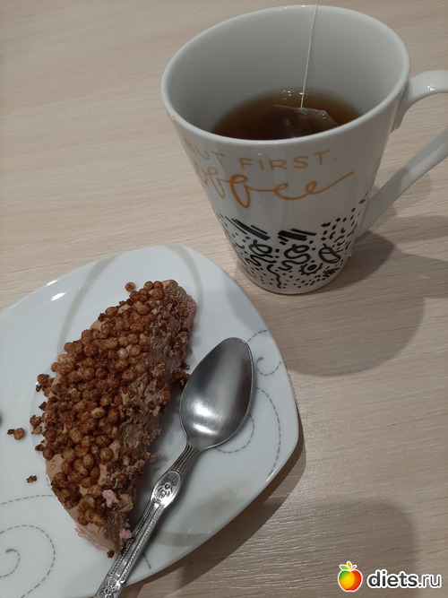 Мой ланч: муссовый чизкейк шоколад-вишня (162 гр) и черный чай без сахара.
