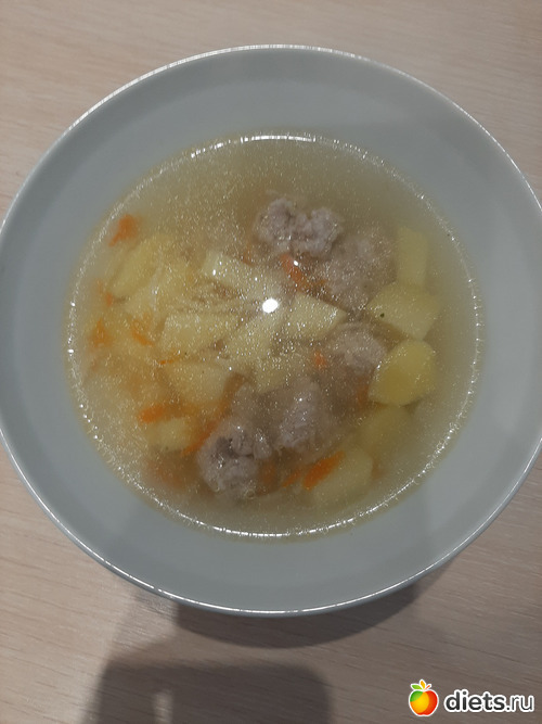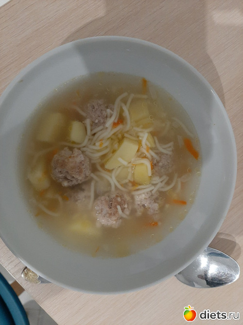 Мой обед: суп с фрикадельками (315 гр) и вода.