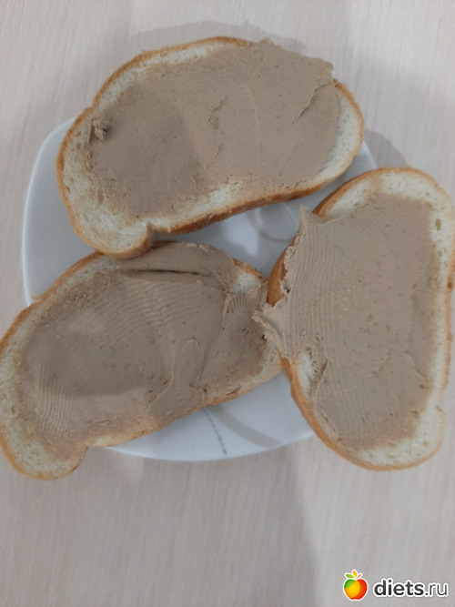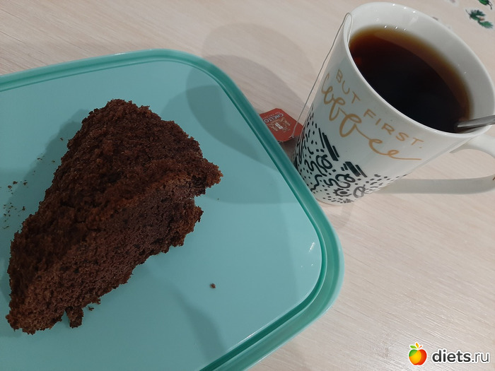 Мой завтрак: говяжий паштет (34 гр), хлеб белый (61 гр), бисквит шоколадный домашний (97 гр) и черный чай с 1 ложкой сахара.