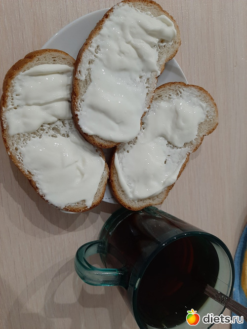 Мой завтрак: хлеб белый (54 гр), сыр плавленный (58 гр) и черный чай с 1 ложкой сахара.