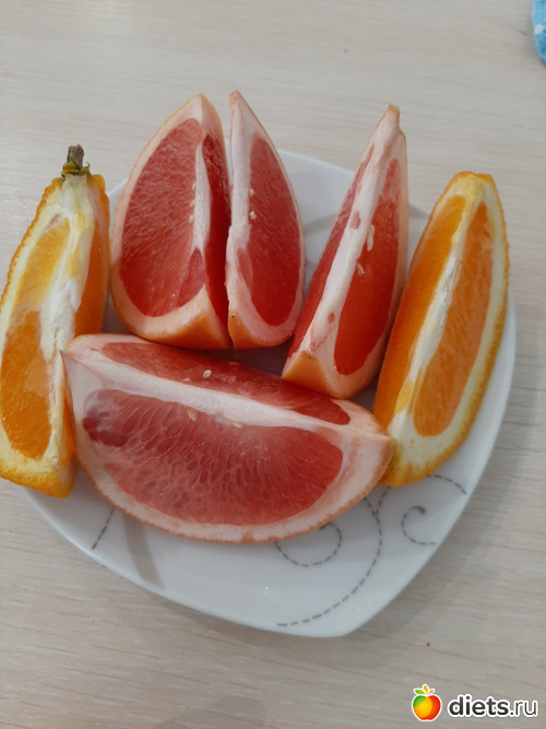 Мой ланч: грейпфрут (162 гр), апельсин (75 гр), зефир (60 гр) и черный чай с 1 ложкой сахара.
