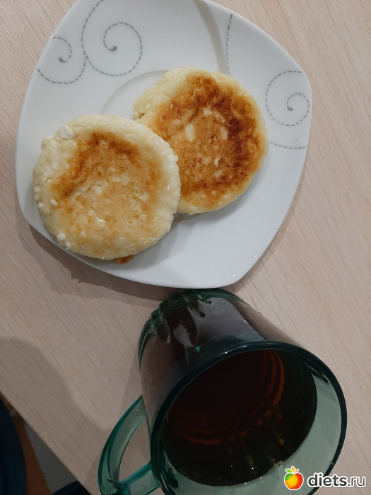 Мой ужин: сырники (155 гр) и черный чай с 1 ложкой сахара.