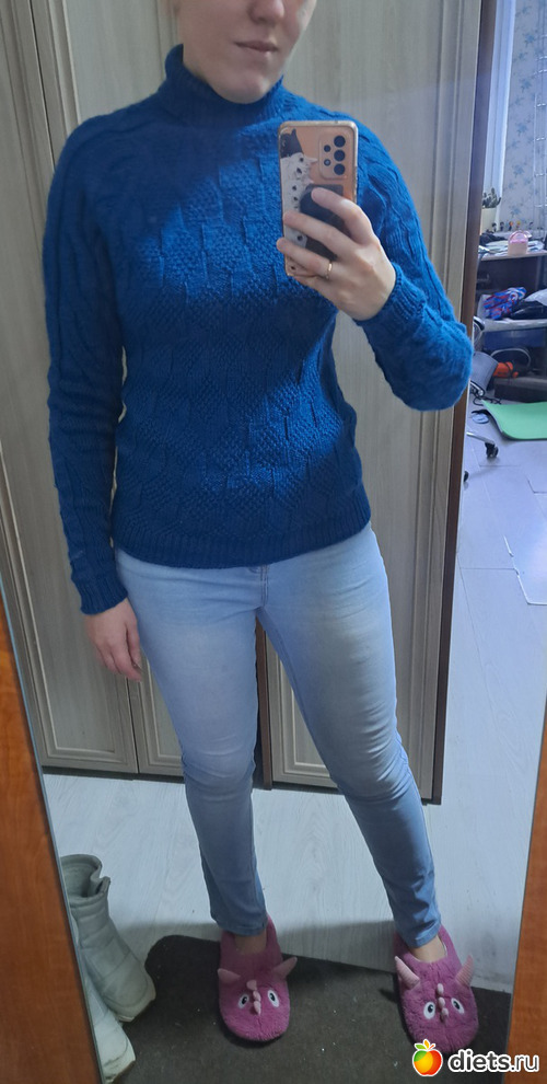 Я вообще вязать училась с целью связать себе свитер, потому что магазинные достали короткими рукавами