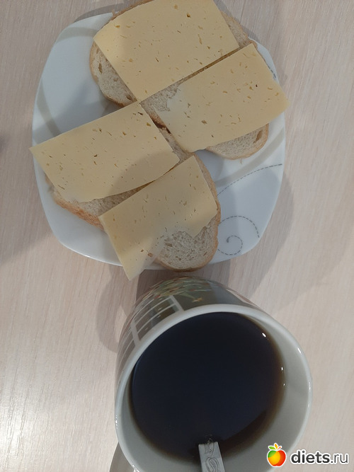 Ланч: хлеб белый (35 гр) с сыром (33 гр) и черный чай с 1 ложкой сахара.