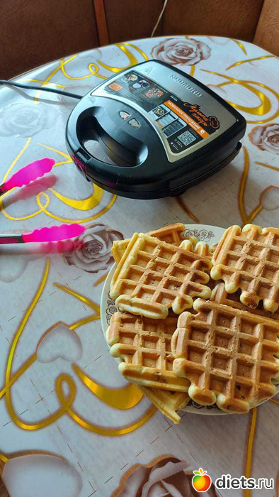 Вафельки, творожные, полезные, но все равно от них пятая точка увеличивается...