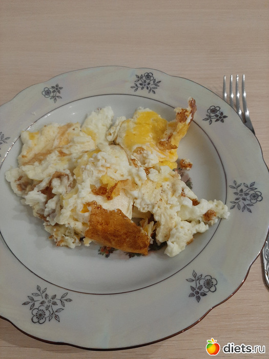 Завтрак: яичница с молоком на сливочном масле (184 гр) и черный чай с 1 ложкой сахара.