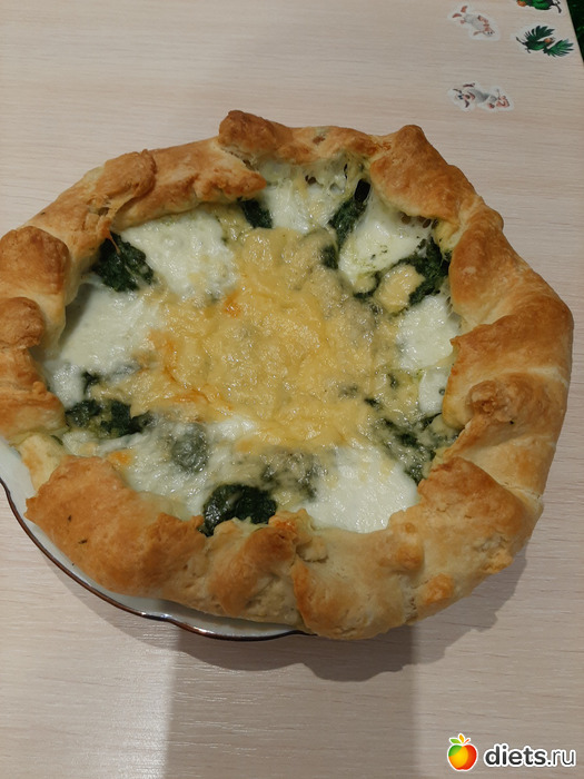 Ужин: галета со шпинатом, сыром и моцареллой (80 гр) и черный чай с 1 ложкой сахара.