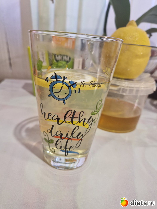 С утра как обычно вода с лимоном и мёдом.
