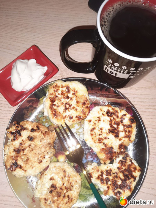 На завтрак у меня были сырники, смешала творог и белок ( остался после выпечки торта) разделила и сделала 3 с сыром еще немного присолила, кстати зря, хватило было соли от сыра, два просто с бананом. Жарила на пергаменте, так удобнее переворачивать непонятную субстанцию, они у меня были довольно жидкими, но получилось вкусно