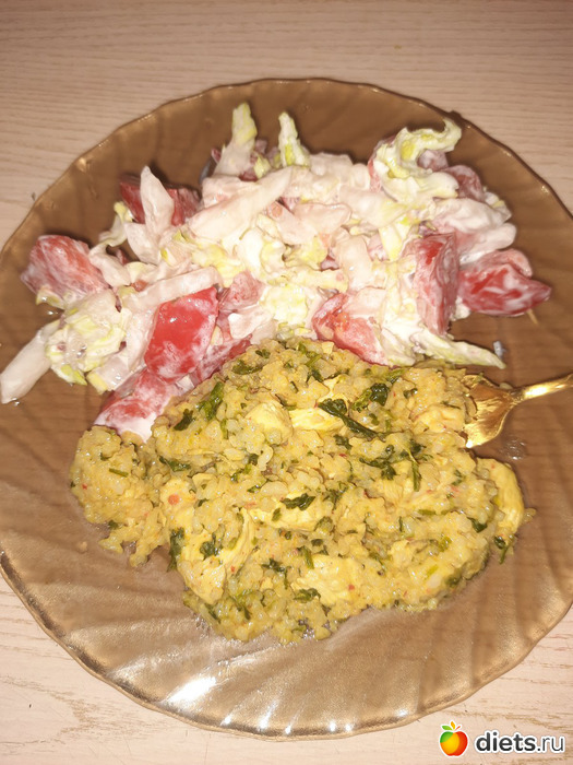 Доела рис с курицей и салт. Хотела больше салата, вышло больше риса с курицей, ну да ладно, приноровлюсь со временем.