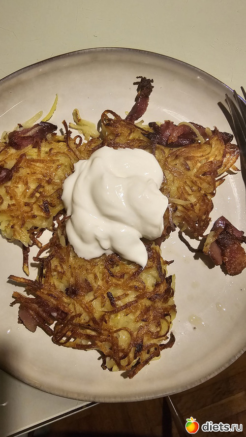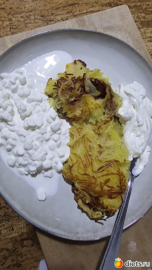 Я готовила - жареная тертая картошка со сметаной и зерновым творогом