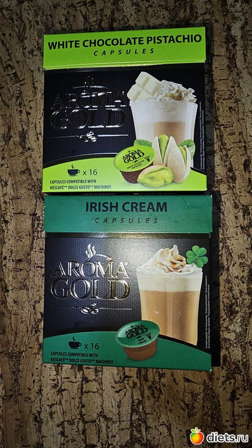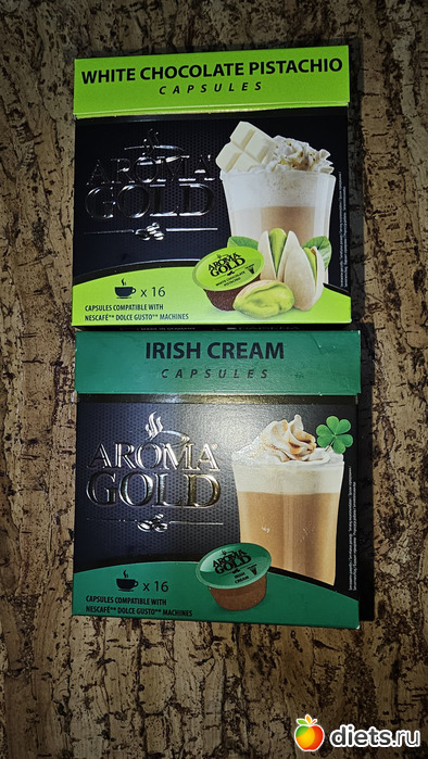 Купила очень вкусные капсулы кофе - айриш крим и белый шоколад с фисташками
