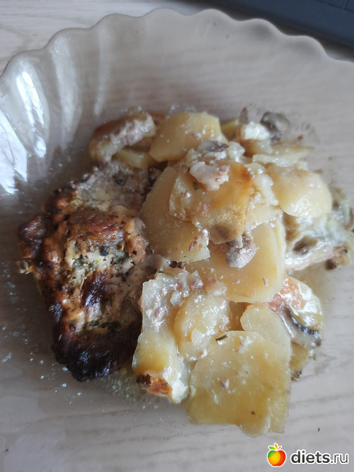 Обед не успевала сварить суп, доела картоху с грибами, луком, мясом и сметаной