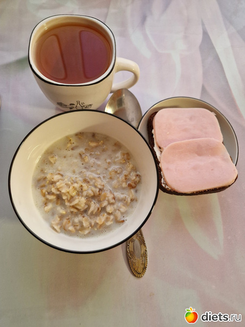 Собрала себя немного в кучу и сварила кашу+чай и бутерброд (хлеб ржаной, творожный сыр, ветчина).