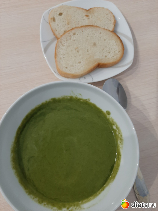 - Приготовила суп-пюре из шпината и булгур с овощами