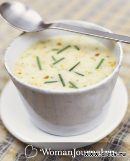 6. Заправить горячий суп сливками, взбитыми с желтками, добавить отварное куриное мясо, нарезанное крупными кусочками, соль, перец и размягченное сливочное масло по вкусу.