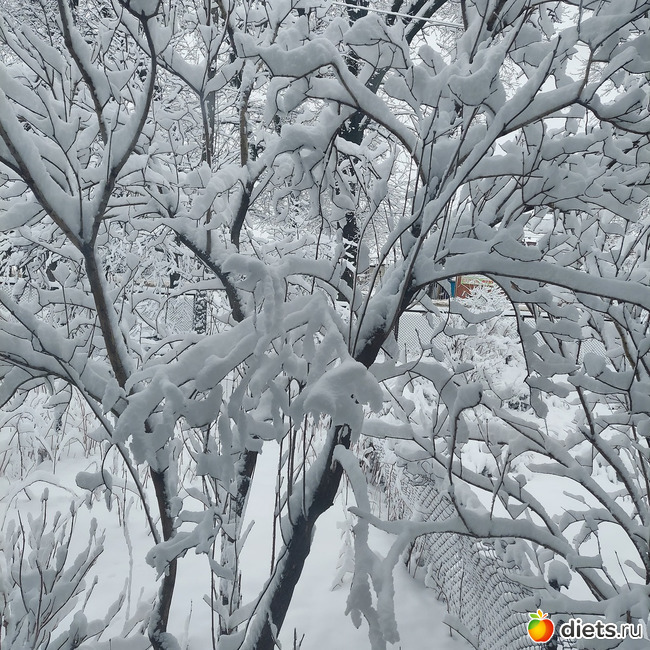 Днем конечно потеплело, но снег чуть остался на деревьях.