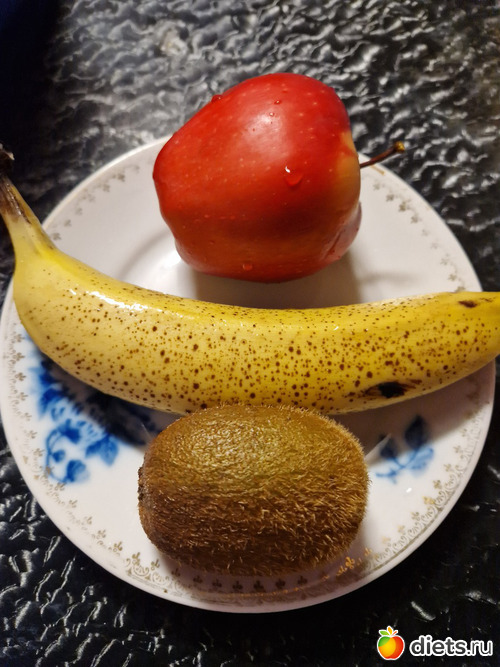 На полдник фрукты, из которых был сделан смузи. +ложка мёда и молоко.