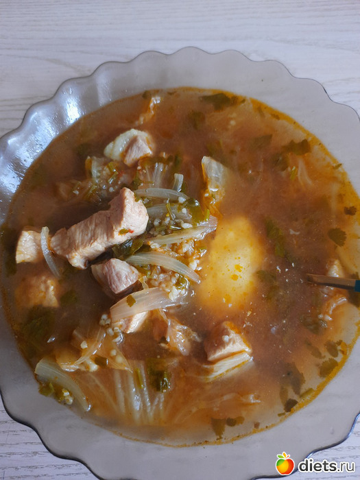 Ой, он совсем простой, мяско, лук, капуста (можно еще пасты добавить, кочудян, но у меня закончилась), я добавила ячневой крупы, это вообще не по -корейски