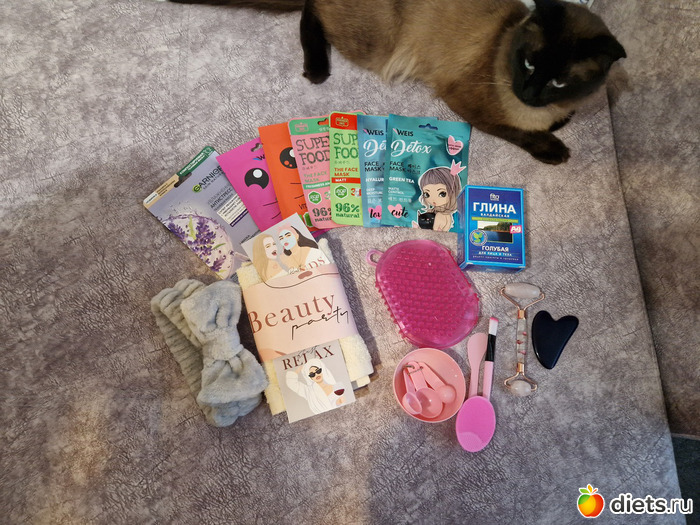 С озона забрала глину, наборчик заказывала (полотенце, повязка, мисочки и кисточки для разведения масочек), и массажёрчики для личика, и для кофейного скраба рукавичку массажную.