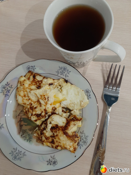 Завтрак: яичница с молоком (175 гр) и черный чай с 1 ложкой сахара.