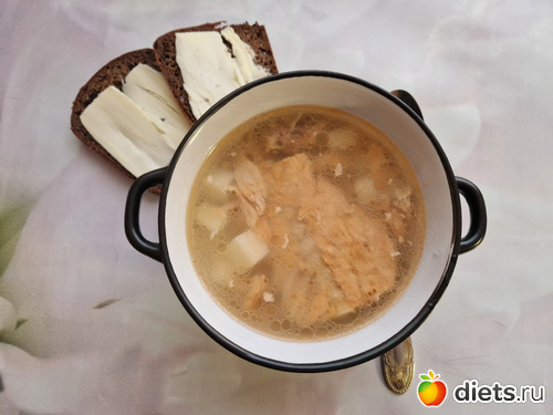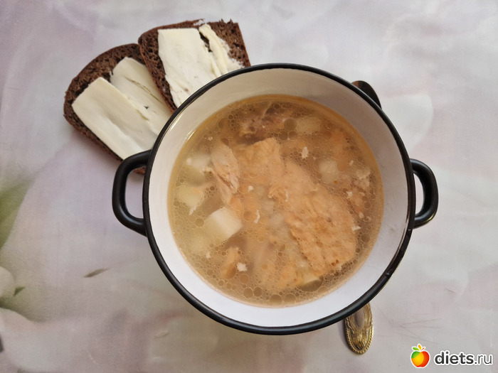 На обед уха и два кусочка ржаного хлеба с маслом. Масло было лишнее явно, но я так соскучилась по хлебу с маслом за прошлую неделю...это ппц!