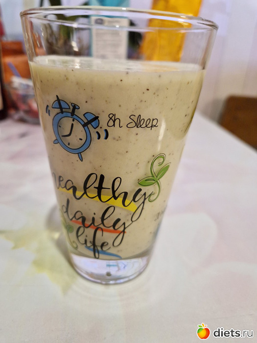На полдник смузи (банан, киви, яблоко, молоко, ложка мёда)