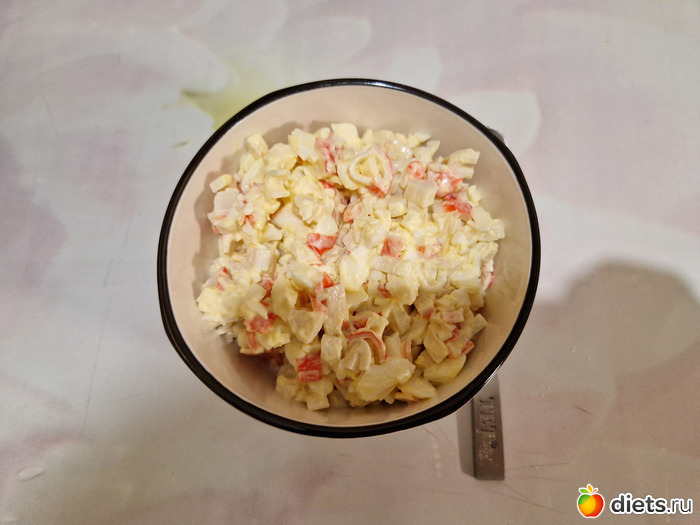 С салатом да, буду на обед есть. Я очень люблю крабовый, причём именно такой, без риса, огурцов и кукурузы. Но на ужин больше так делать не буду, тяжко было.