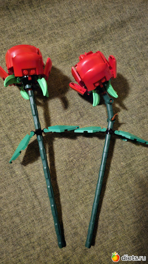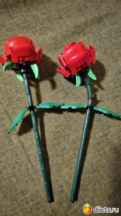Попались на глаза такие лего цветы. Купили один наборчик дочке, другой - ее подружке на др. Дочка равнодушна к лего уже пару лет, но эти розы собрала с удовольствием