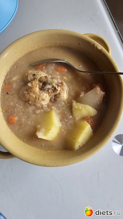Суп с купицей и гречкой. Никогда не клала гречку в суп. Получилось вполне сьедобно