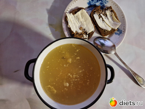 Домой пришла почти в 17ч. Обедать уже поздно, ужинать ещё рановато. А у меня на фоне вот-вот нагрянувших кд аппетит разыгрался, пошла с дуру ухи поела. И снова с хлебом