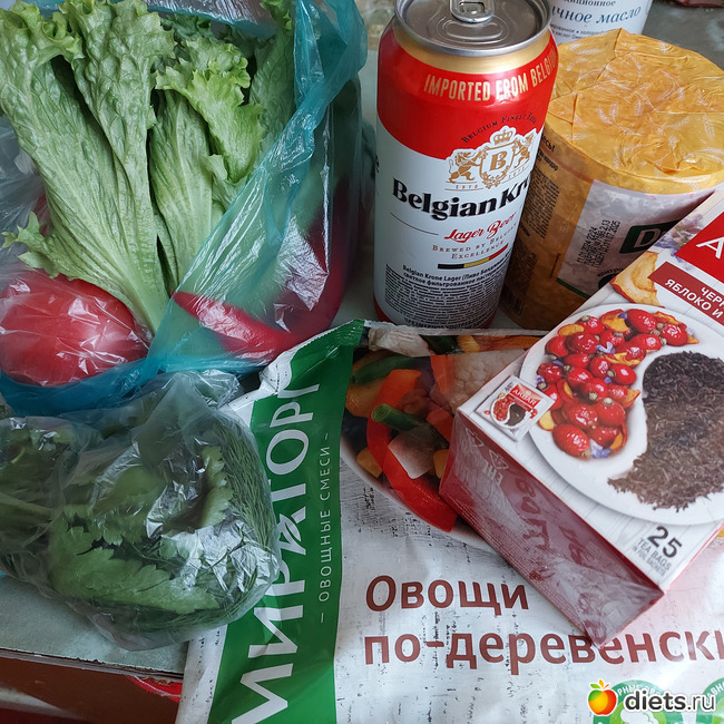 Сходила за хлебцами и конечно прикупила к ним : Овощи по деревенски, чай для сына (подарила сыну самовар керамический с заварным чайником сверху )конечно же баночку пива, у меня же еще 2 леща