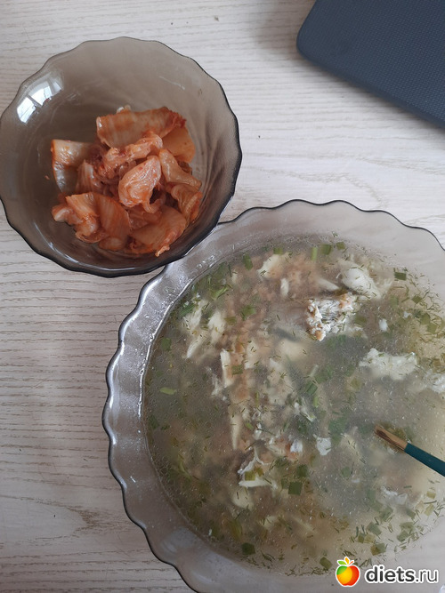 На обед доела вчерашний бульон с лапшичкой + кимчи